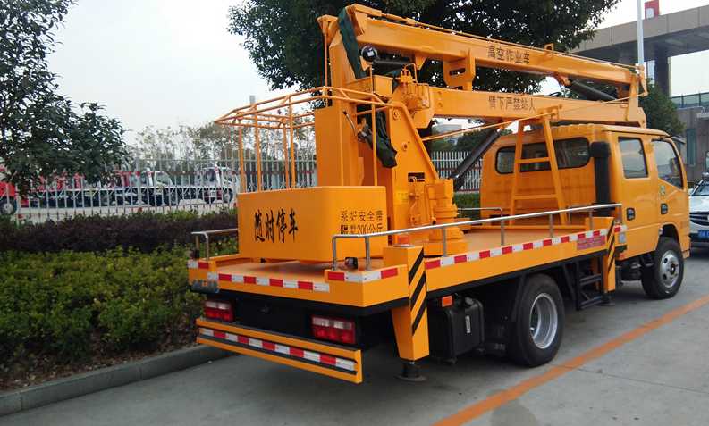 上裝配置:最高作業高度14米,單液壓舉升缸,帶雙向平衡閥,電控操作舉升臂,四只液壓油缸可調節支腿帶雙向液壓鎖(支腿操作為手動操作,可單獨控制),液壓式三節折疊臂,作業幅度:7.4米。支腿與工作臂互鎖,安全可靠,防止誤操作過位。四個液壓支腿,工作吊籃和轉臺上下兩處均可操作,工作吊籃最大可承載200公斤,1噸的起重吊機,360度回旋,并安裝有手動油門。工作斗作業幅度為2米,吊鉤起升高度為8米,吊鉤的起重噸位為1噸。支腿橫向跨距為3米3,支腿縱向跨距為2.95米。